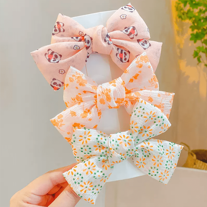 The 3 Pcs Exquisite Floral Pattern Elegant Bow Hair Clips For Women