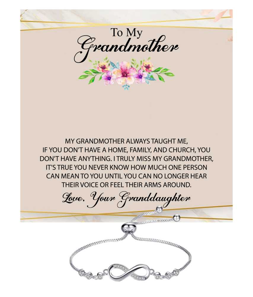 Bling Queen is an affordable fashion jewellery brand with various product types like bracelets, necklaces, earrings, rings, etc. suitable for women, men and kids. This exquisite silver plated zirconia infinity chain bracelet is a heartfelt tribute to the enduring love and connection shared with a beloved grandmother. The bracelet features a graceful infinity symbol, representing eternal love and unbreakable bonds. Crafted from high quality silver plating, the bracelet boasts a radiant finish that adds a touch of elegance to any outfit. The infinity symbol is beautifully adorned with sparkling cubic zirconia stones that shimmer with every movement, capturing the light and drawing admiration. Each stone is carefully set to ensure a stunning display of brilliance, reflecting the cherished moments shared between you and your grandmother. The bracelet is designed with an adjustable chain, allowing for a comfortable fit on any wrist size, making it perfect for everyday wear or special occasions. Accompanying the bracelet is a beautifully designed message card that elevates the emotional impact of your gift.