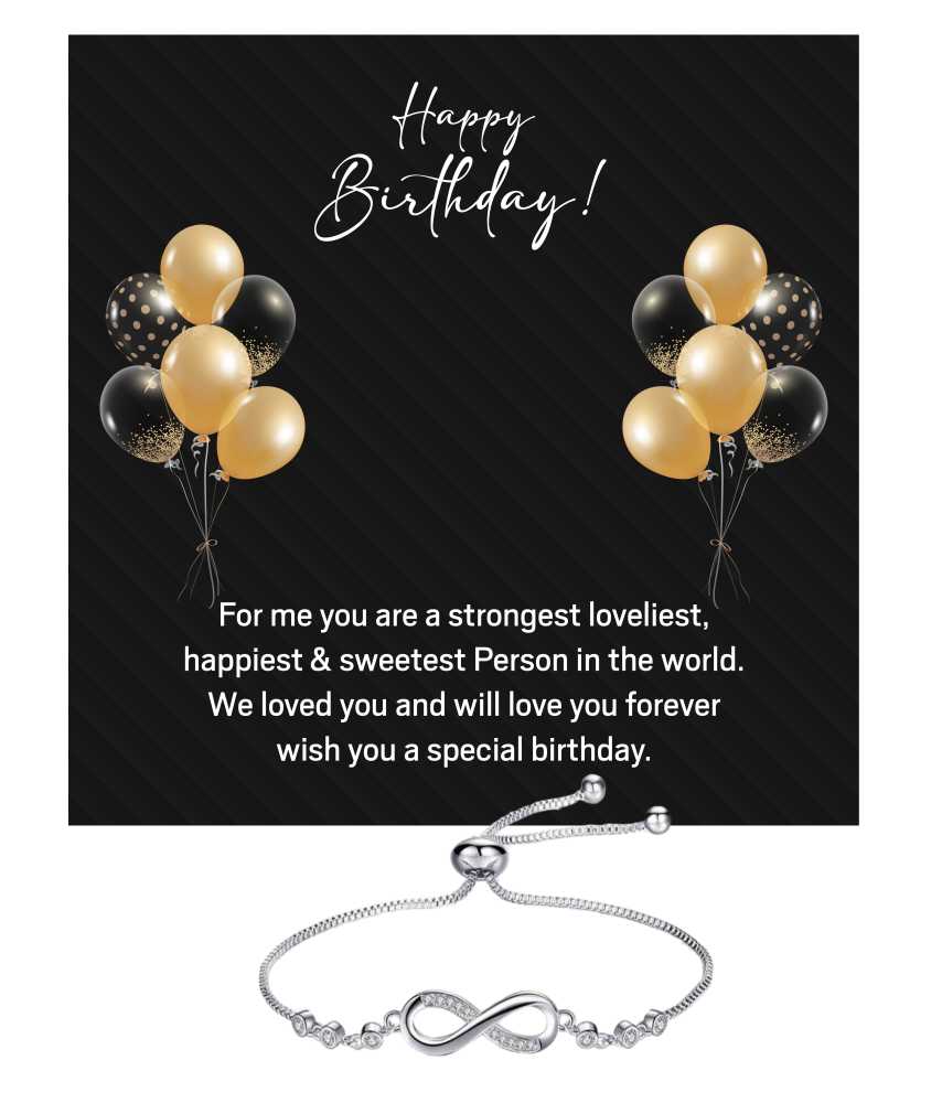 Bling Queen is an affordable fashion jewellery brand with various product types like bracelets, necklaces, earrings, rings, etc. suitable for women, men and kids. The Infinity Silver Adjustable Bracelet is a beautiful and versatile piece designed for women and girls who love to combine elegance with meaning. Featuring a sleek infinity symbol adorned with cubic zirconia stones, this bracelet symbolizes endless love, connection, and strength. Crafted from high quality silver plated material, its polished finish ensures lasting shine, while the adjustable sliding clasp offers a perfect fit for any wrist size. This timeless piece complements both casual and formal outfits, making it an everyday essential or a statement for special occasions. Accompanied by a thoughtful birthday message card, this bracelet makes an ideal gift.