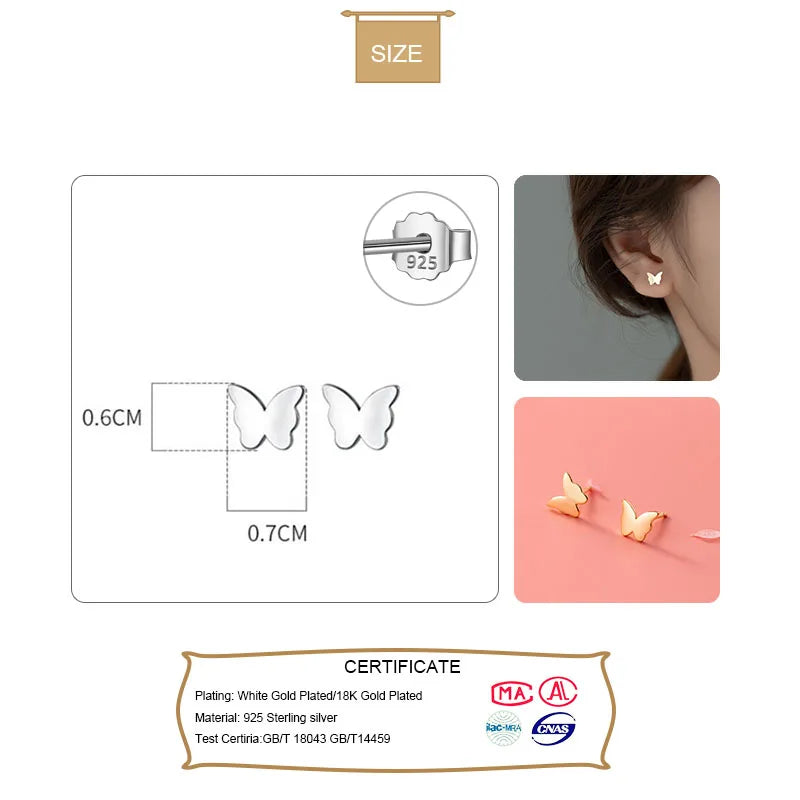 These sweet insect butterfly stud earrings are made of real 925 sterling silver, suitable for women. Perfect for weddings and parties.