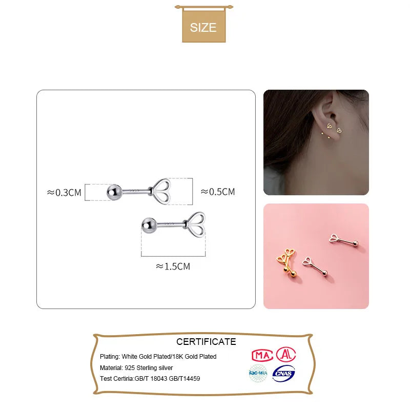 Add a touch of sweetness to your look with these heart beads stud earrings. Made of 925 sterling silver, perfect for weddings and parties.