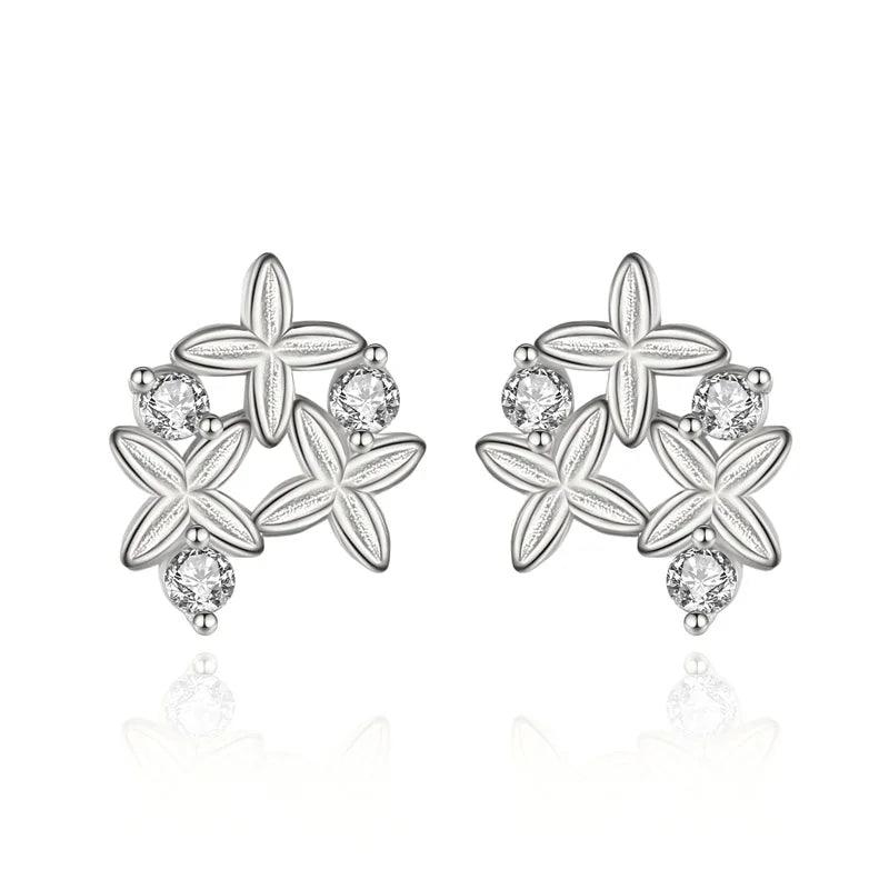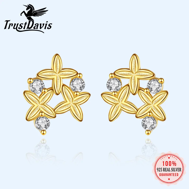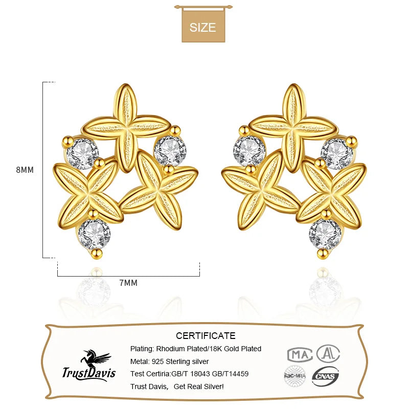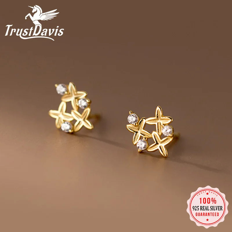 TrustDavis Cross Flower Stud Earrings 925 Silver Women Wedding Party Jewelry