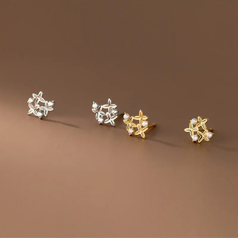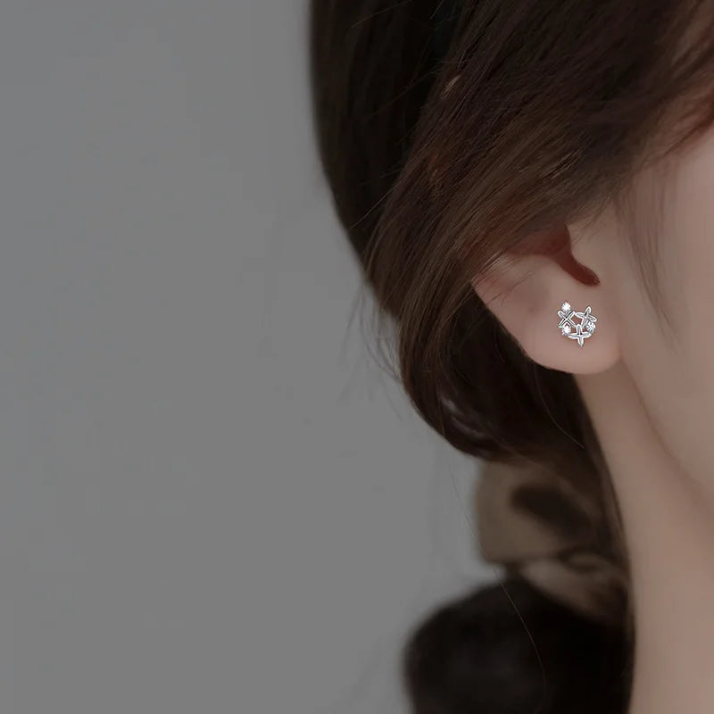 These elegant stud earrings feature a cross and flower design, crafted from high-quality 925 sterling silver. Perfect for weddings, parties, or everyday wear as minimalist and sweet S925 jewelry.