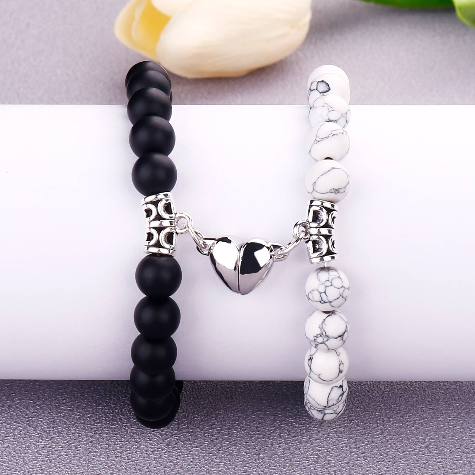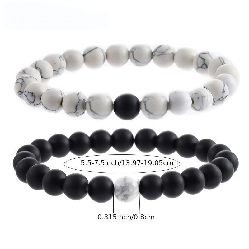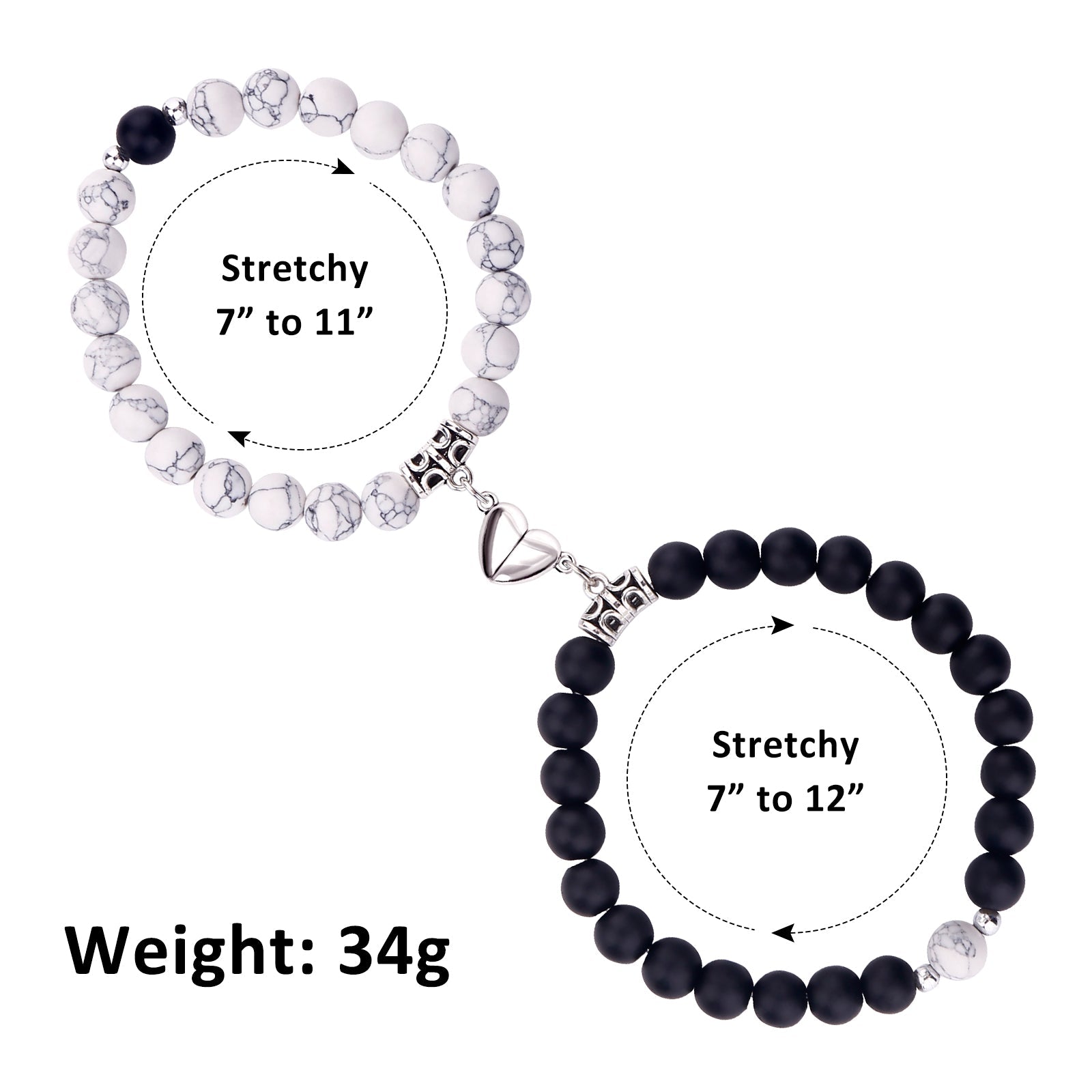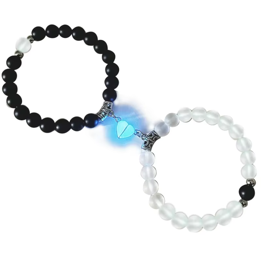 This unisex stainless steel bracelet, designed for couples who appreciate elegance and style. Made from high quality stainless steel, ensuring durability and a sleek, polished finish. Crafted from luminous crown heart beads that emit a subtle, captivating glow. Classic black and pristine white, offering a versatile and sophisticated contrast. The centerpiece of the bracelet beads feature a dazzling luminous effect, catching and reflecting light to create a radiant sparkle. The crown heart beads symbolize love, loyalty, and commitment, making this bracelet a meaningful accessory for couples. The contrasting colors of white and black represent unity in diversity, celebrating the bond between two people.