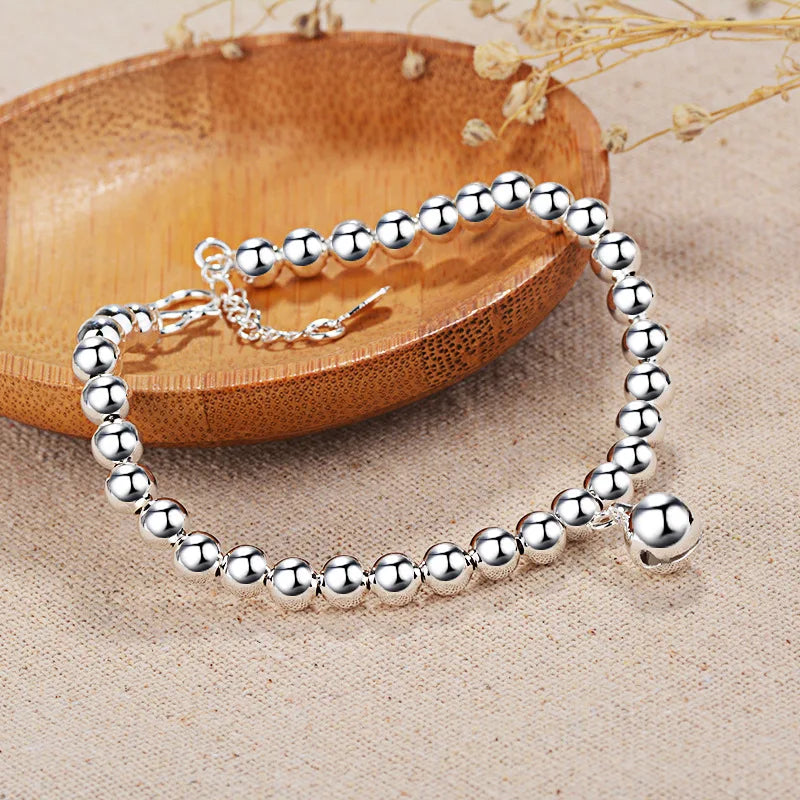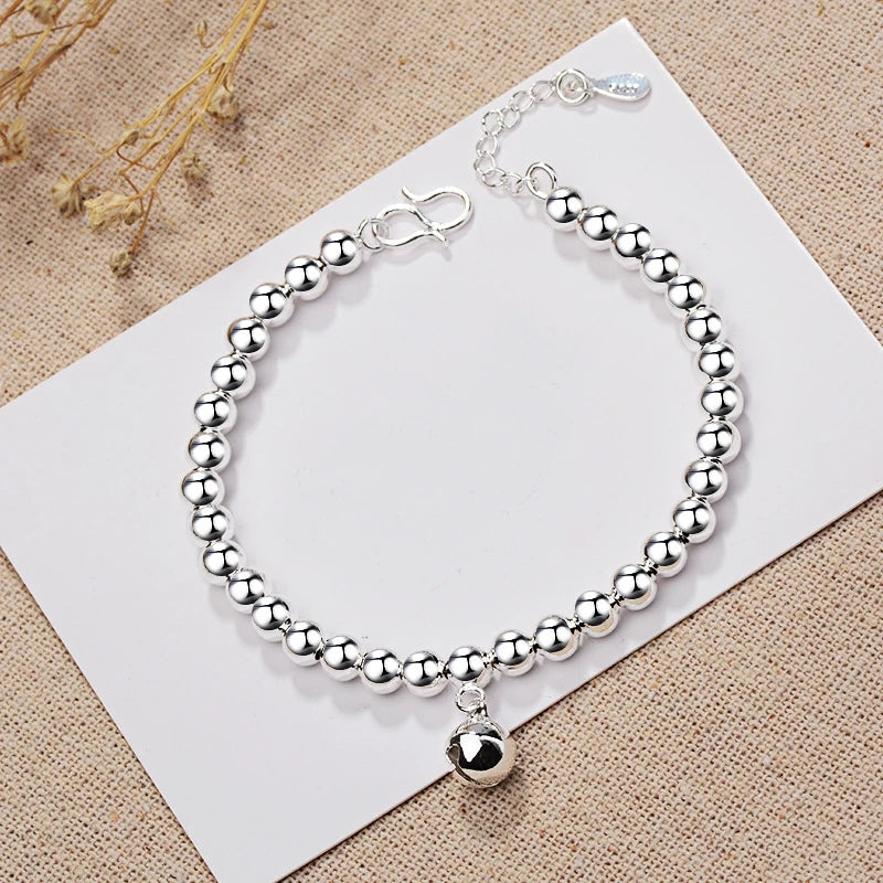 This beautiful bracelet features vintage beads and a bell charm made of 925 sterling silver, perfect for parties, birthdays, weddings, or as a gift.