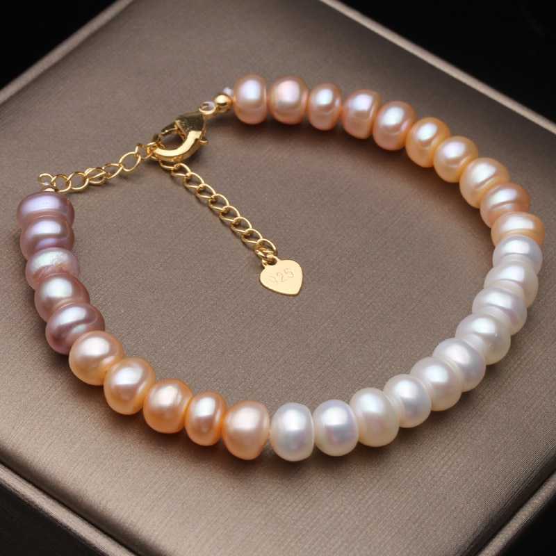 Women's Classic Freshwater Button Pearl Link Chain Bracelet