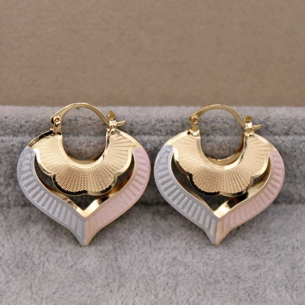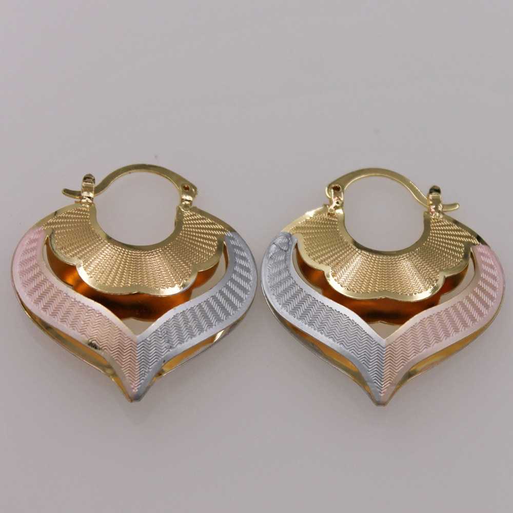 Bold and beautiful, this pair exudes class and style and will suit any attire. These tricolour earrings are polished to a bright shine and showcase a flower and a leaf. These earrings have a hollow design with a zig-zag pattern and have a hoop closure.