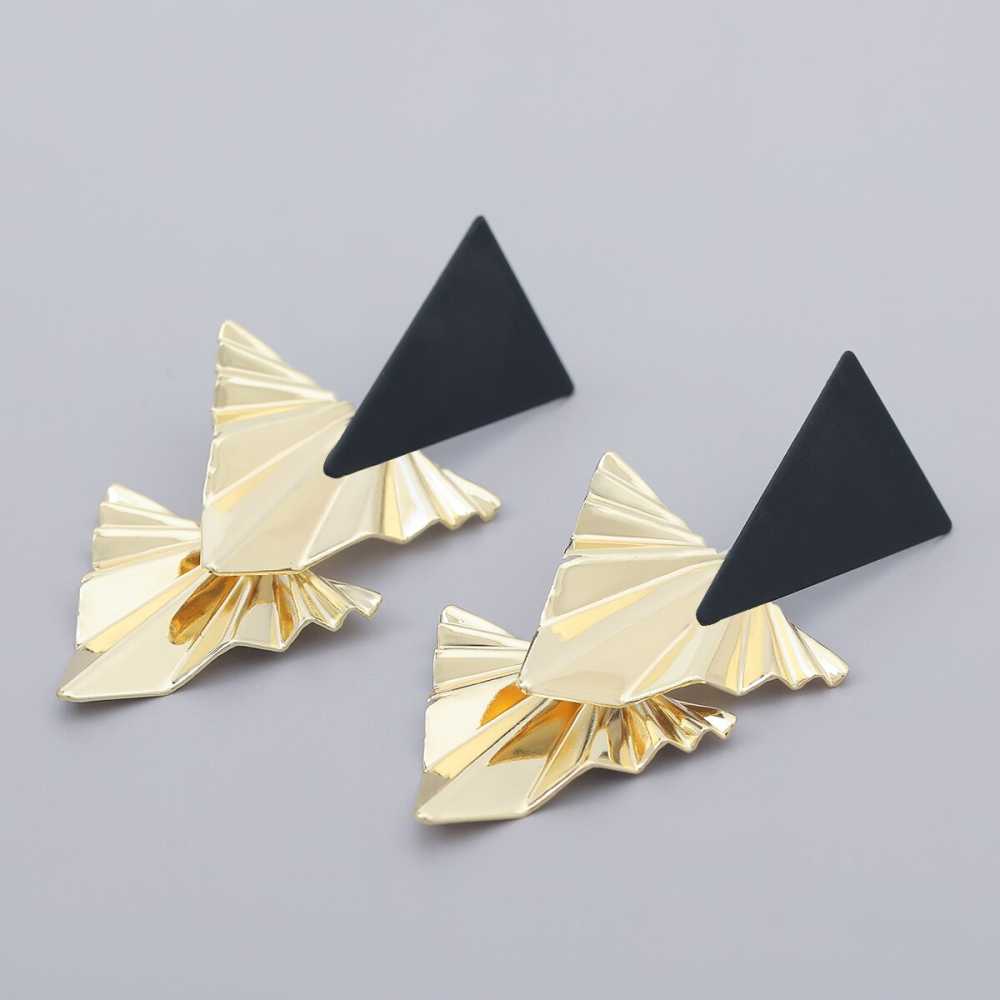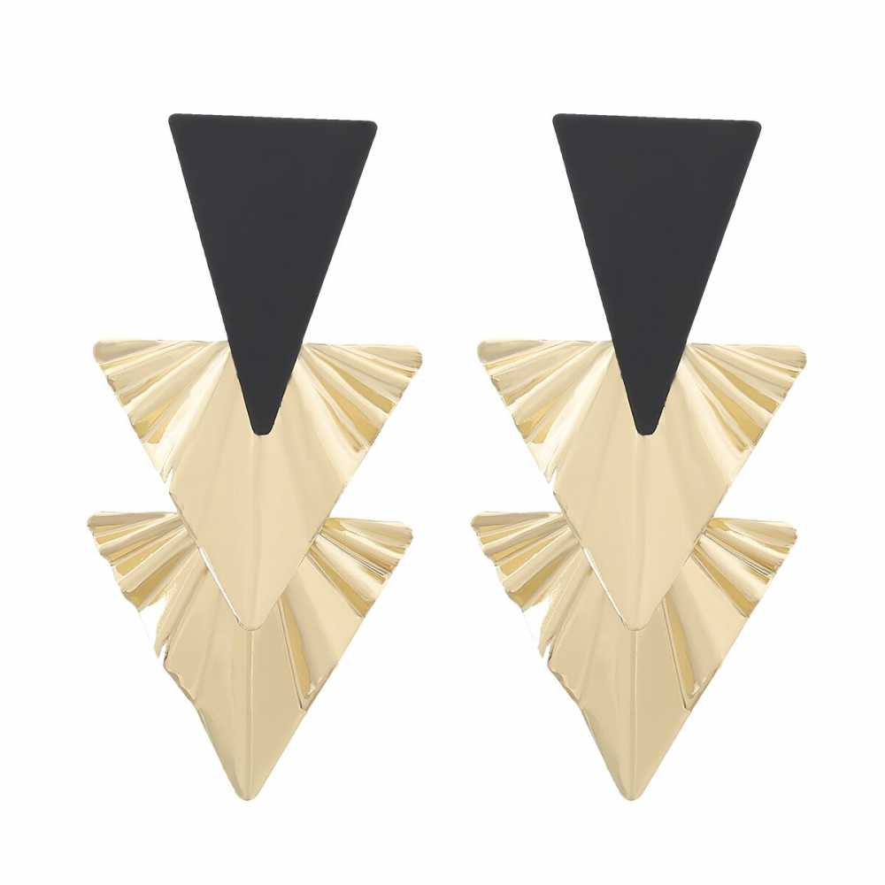 This contemporary, unique, and delightful design feature triangles of pleated and frilled surface shape dangles. It adds a simplistic yet elegant touch to your everyday looks.