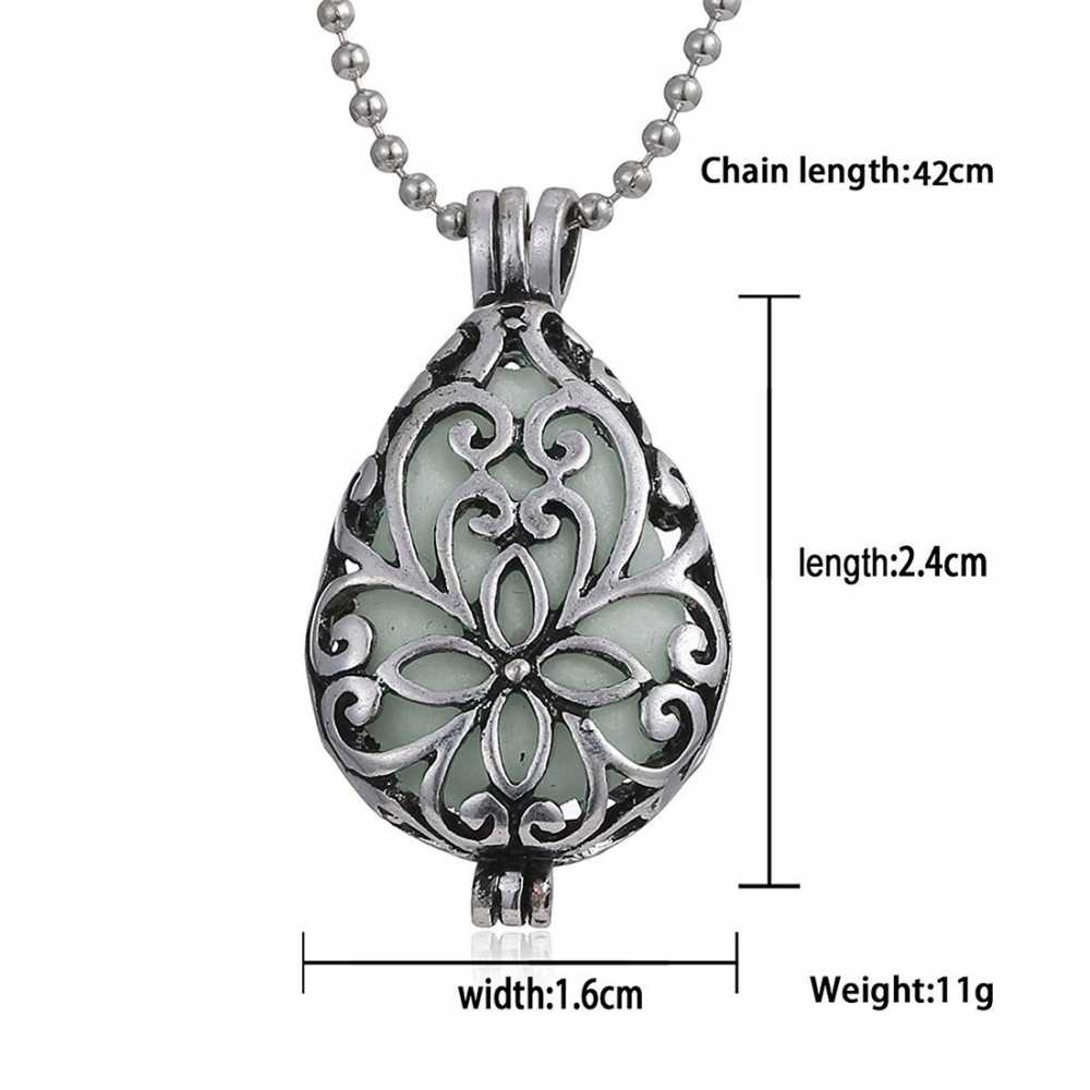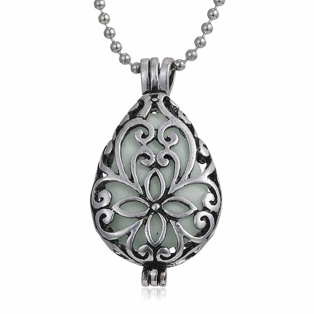 Women's Glow In The Dark Openwork Teardrop Pendant With Chain