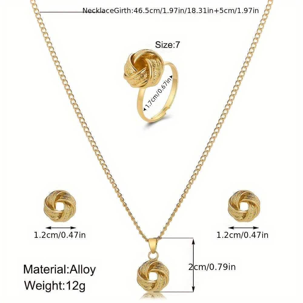 Women's Gold Plated 4 Piece Jewelry Set with Elegant Round Knot Design