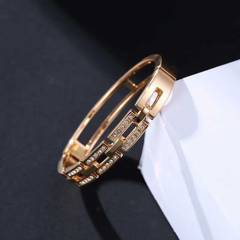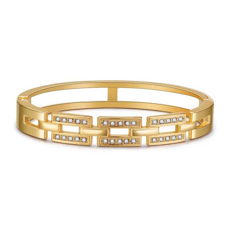 Women's Gold Plated Hollow Bangle Zirconia Embossed Bracelet