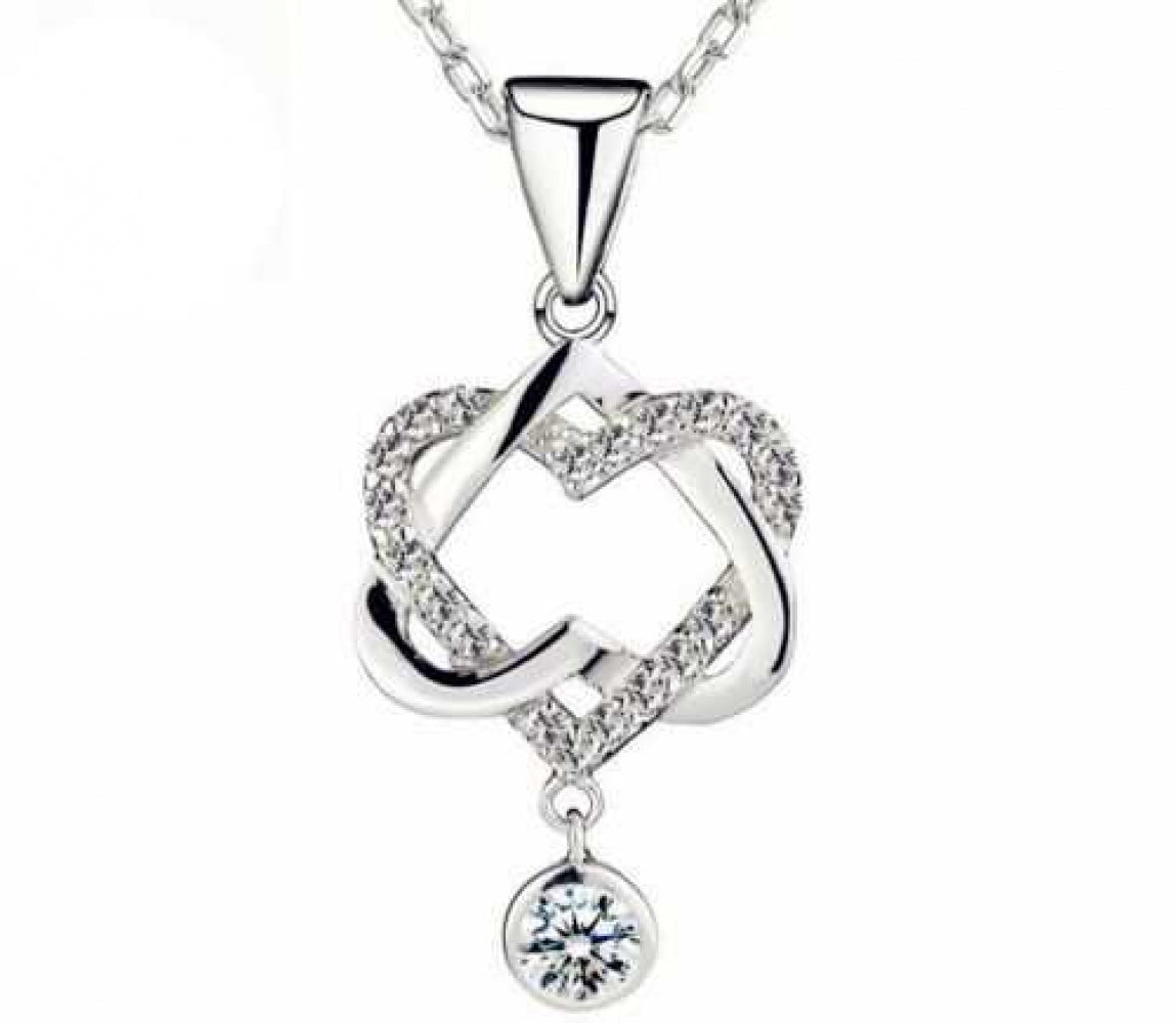 Women's Braided Heart Drop Necklace With Cubic Zirconia