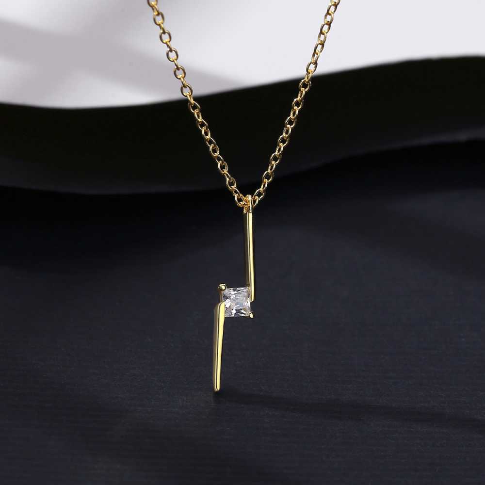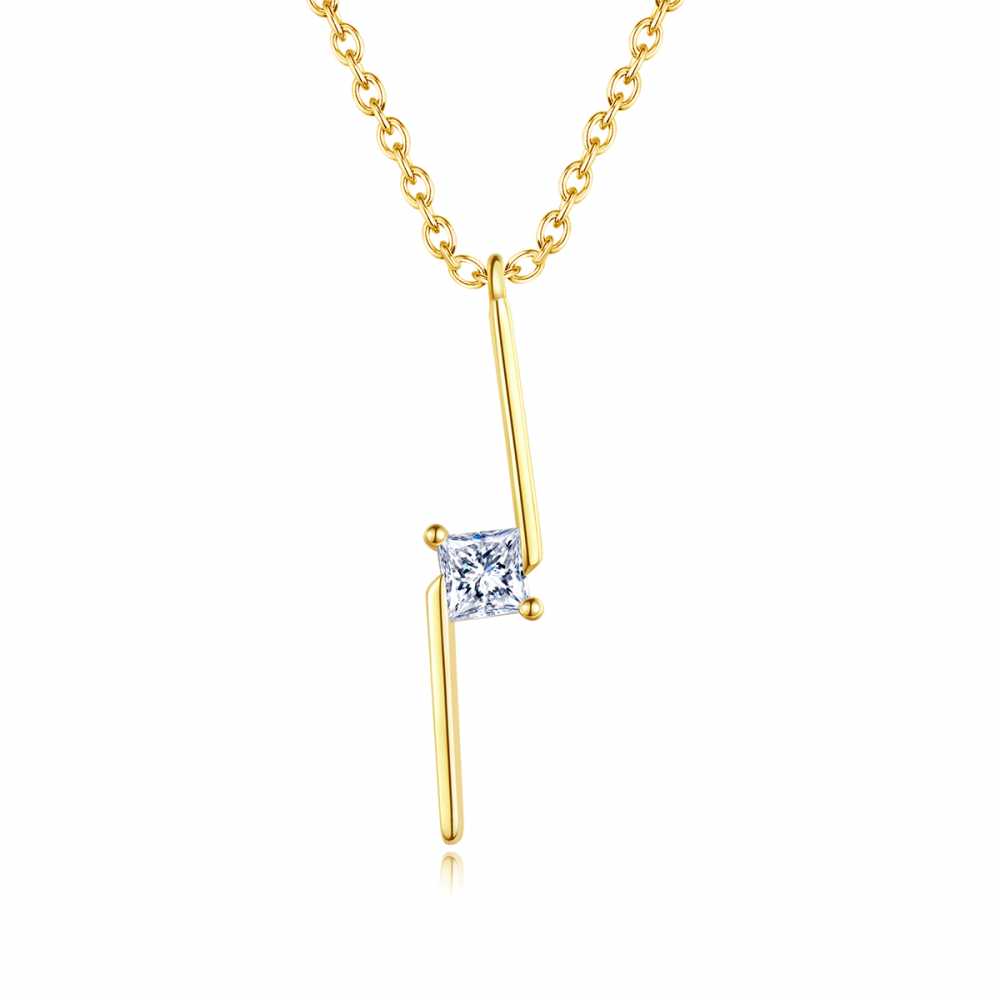 A perfectly poised cubic zirconia stone adds a touch of elegance to the simple pendant. This pendant necklace features square-cut zirconia at the center of two connecting poles. Get ready to turn heads and stun eyes with this scintillating piece of the fine minimalistic pendant. This pendant suspends on an 18-inch link chain.
