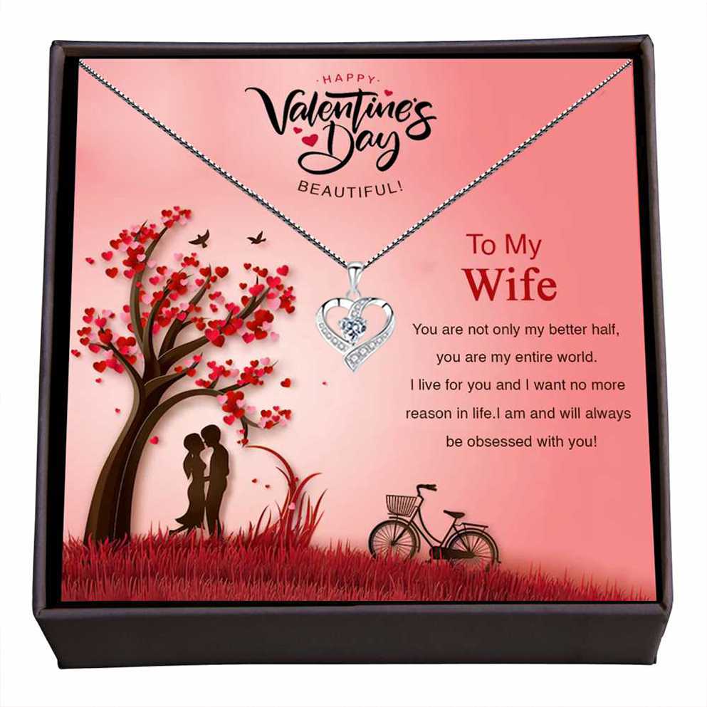 - Product Particulars: This pendant necklace is made of high quality material plated with silver and studded with cubic zirconia stones. It comes with beautiful To My Wife message card.