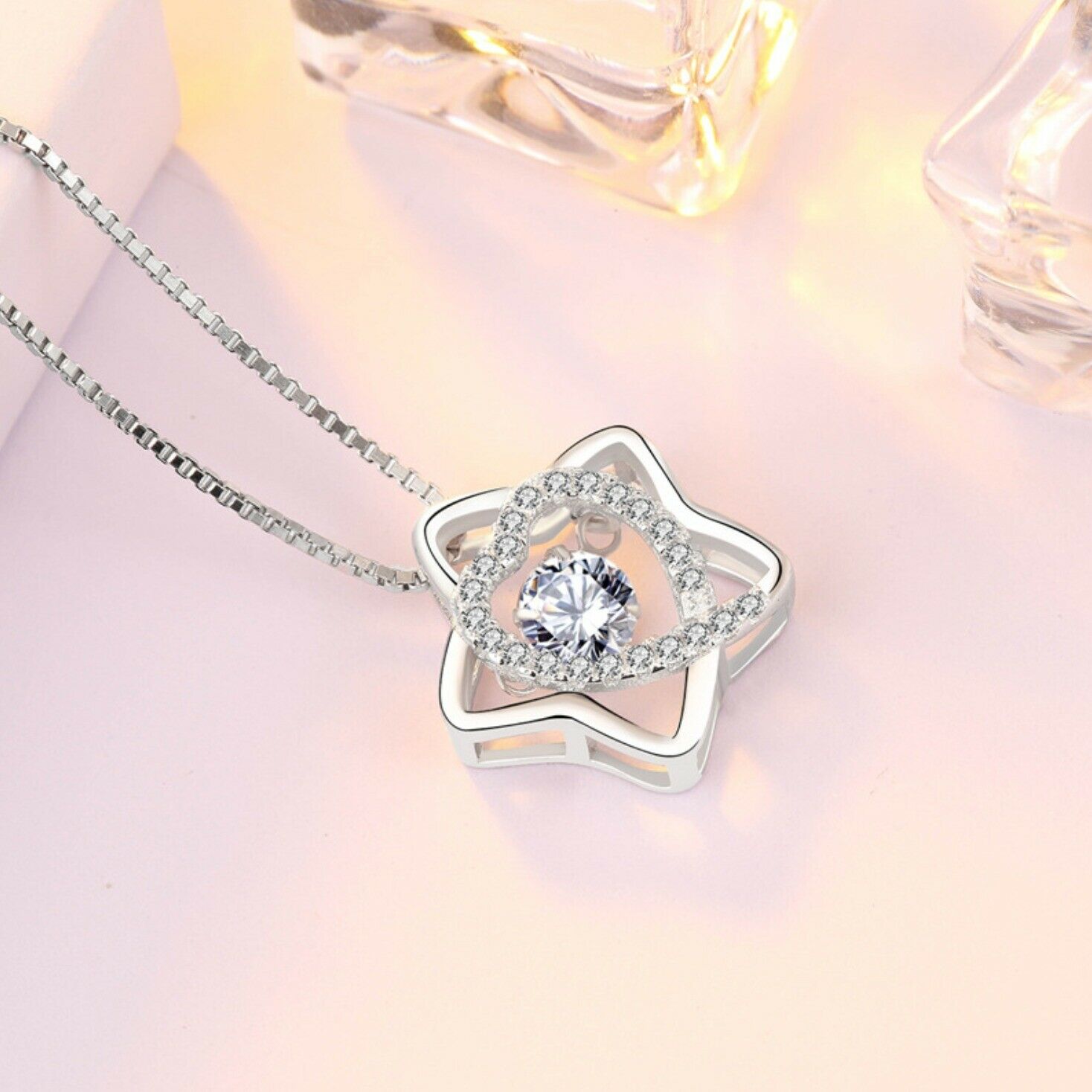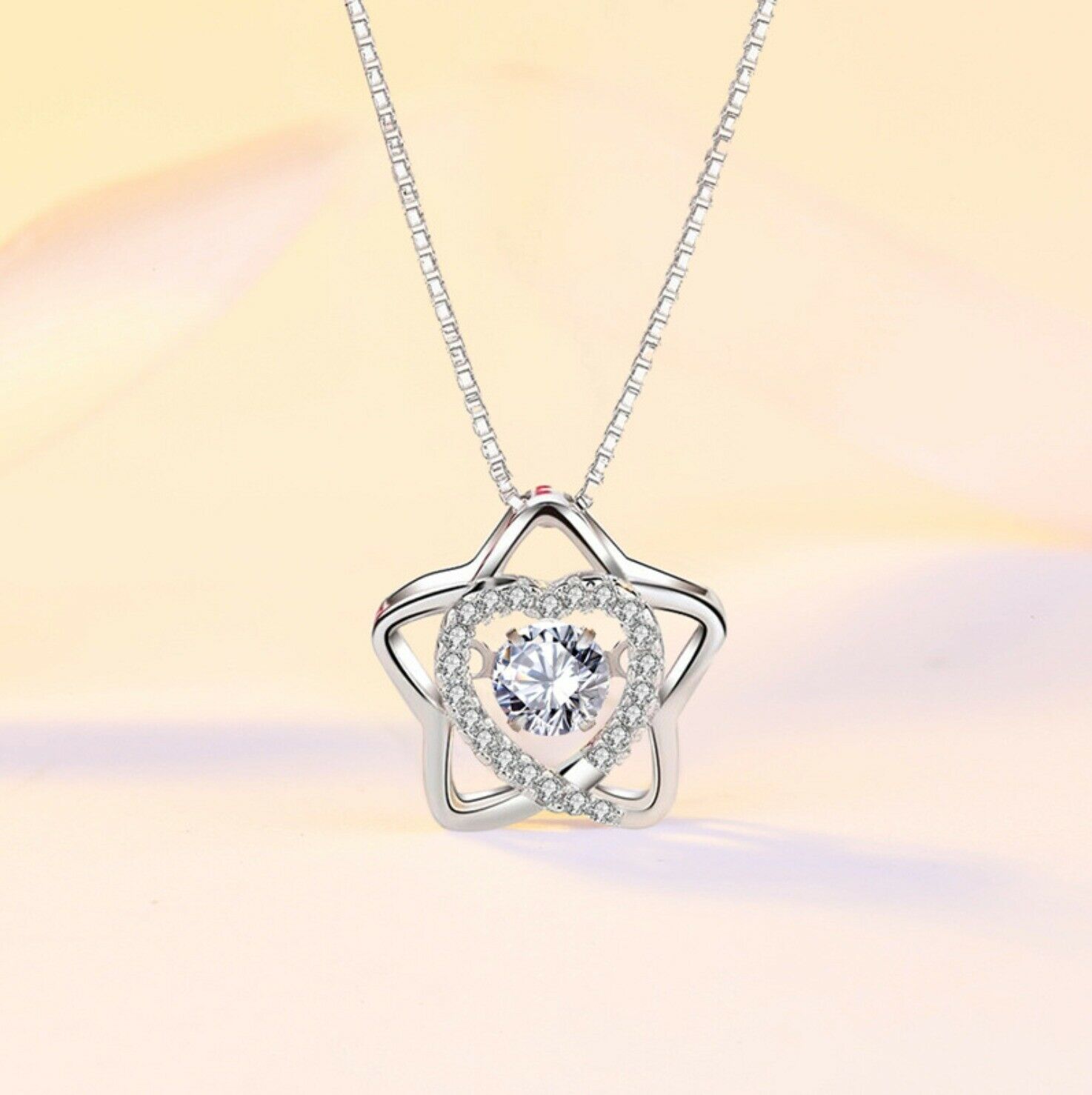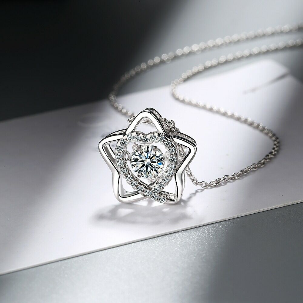 This silver plated metal heart star stone pendant is beautifully embellished with cubic zirconia. The interior heart stone is positioned accurately in the middle of the exterior star pendant. The pendant in its totality is visually very appealing. You can wear it with different outfits on various occasions.
