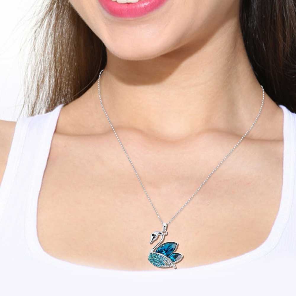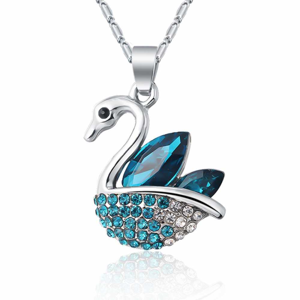 Women's Silver Plated Blue Crystal Swan Pendant With Chain
