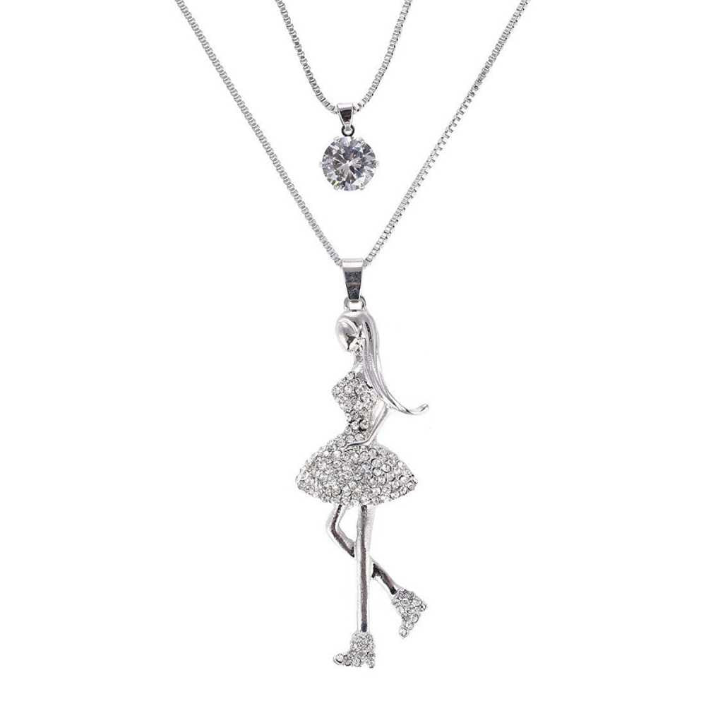 Women's Silver plated Double Layered Girl Pendant with Chain