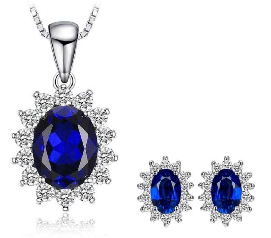 • Product Particulars: Crafted from high quality silver plated material, the focal point of the set is the stunning sapphire gemstones. The pendant necklace features a delicate box chain, feature clasps and findings to securely fasten the jewellery and ensure a comfortable fit.