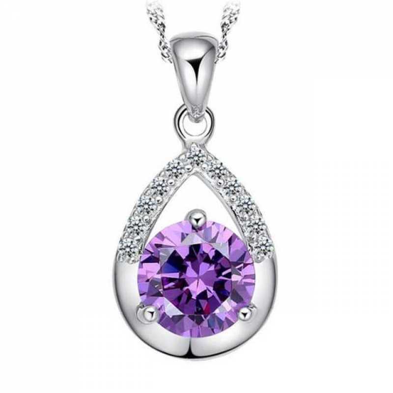 This silver plated teardrop pendant with sparkling stones will bring a touch of magic and wonder to your day. This round stone is inlaid at the center of the pear-shaped pendant studded with intricately designed tiny stones.