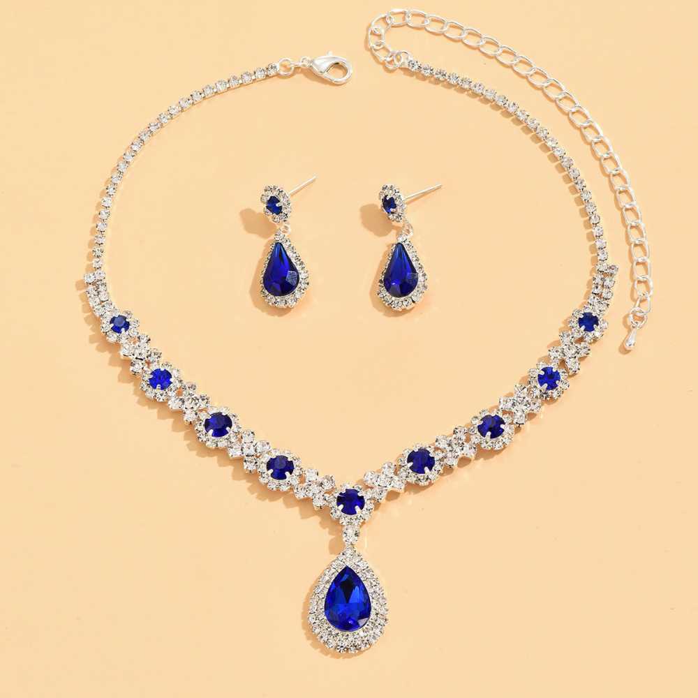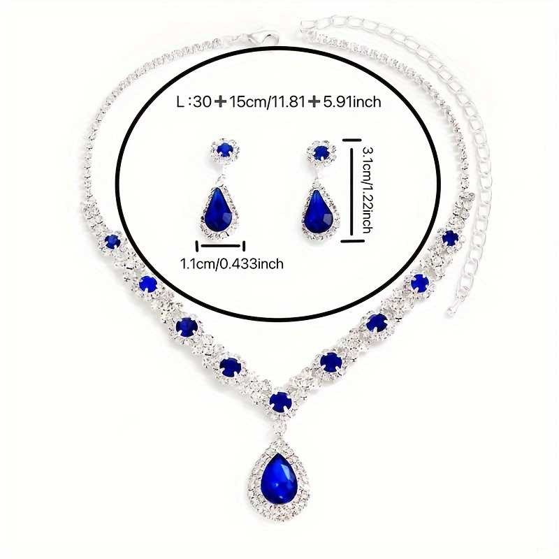 - Product Particulars: Crafted from high quality zinc metal plated with silver finish. The necklace and the earring are embossed with cubic zirconia stones. Moreover, the necklace comes with adjustable lobster clasp mechanism. The dangle and drop earrings are secured with push back closures.