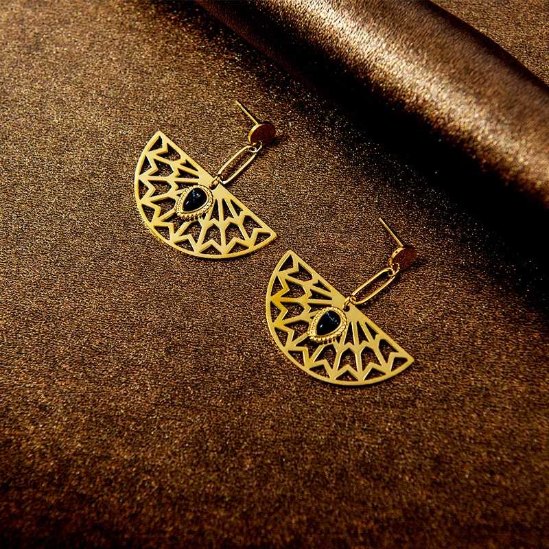 Women's Stainless Steel Fan Design Drop Earrings With Stone