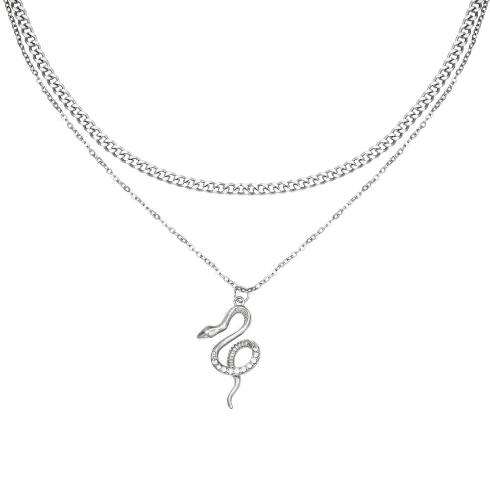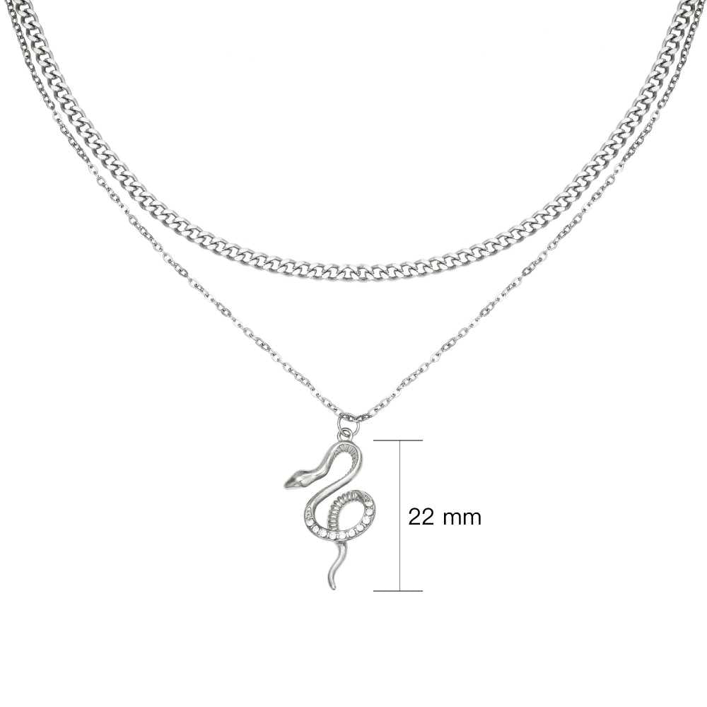 Women's Stainless Steel Layered Necklace With Snake Pendant