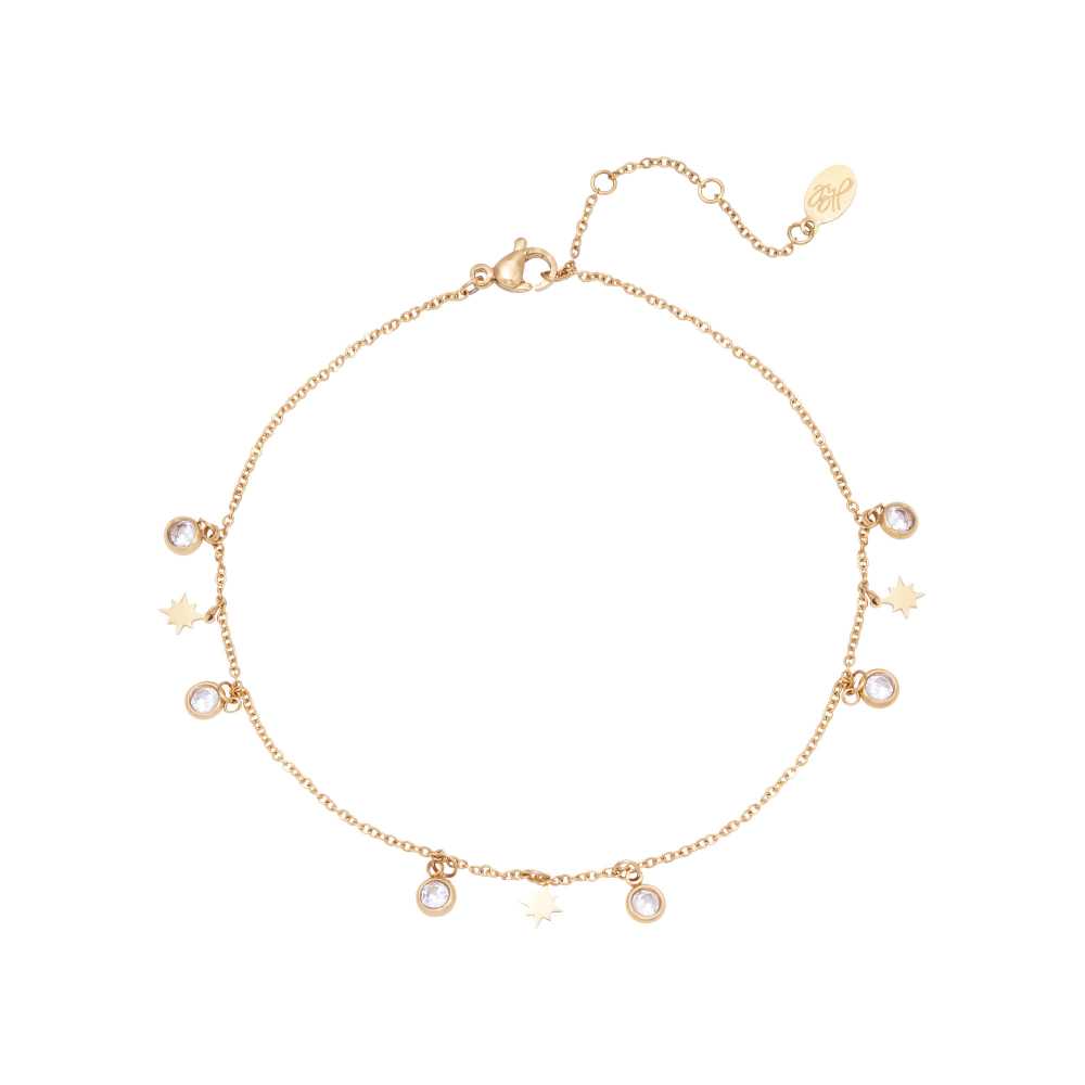 Women's Stainless Steel Star Charm Anklet With Cubic Zirconia