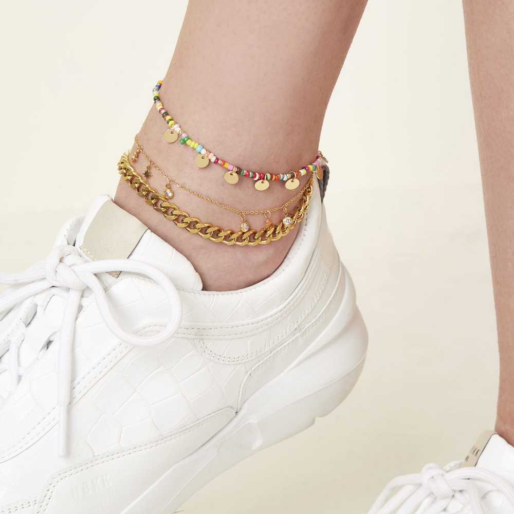 This stainless steel anklet is beautifully embellished with shining star charms. It comes with an extended chain to adjust the length. It makes your ankle look thin, elegant, and stylish.
