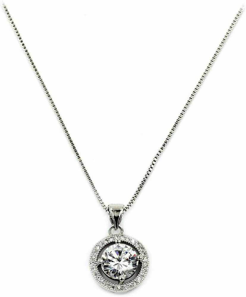 Gift her this circle pendant to profess your never-ending love. This pendant features a border of smaller accent cubic zirconia halo that frames the centre cubic zirconia solitaire, wrapping it in a sparkling embrace. This pendant suspends along an 18-inch link chain and secures with a lobster clasp.