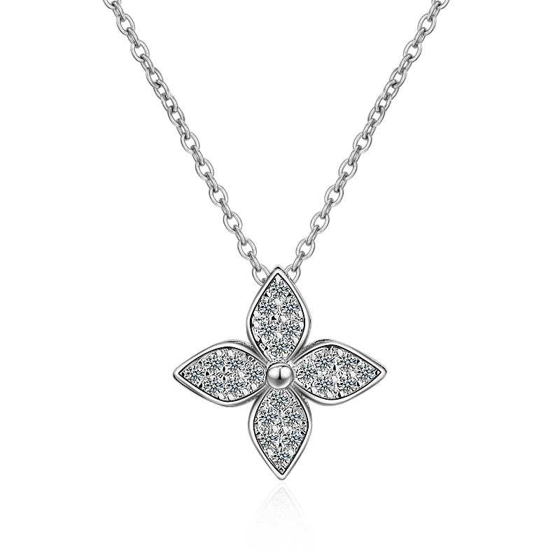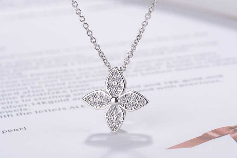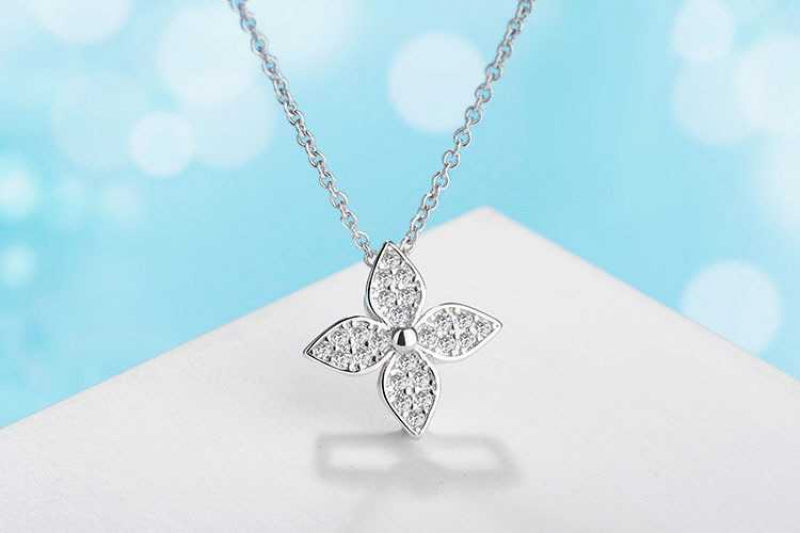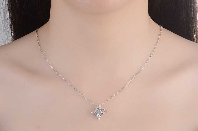 A dazzling embodiment of nature's beauty combined with the brilliance of cubic zirconia for a touch of glamour. This intricately crafted pendant is designed to capture attention and evoke a sense of timeless elegance. The breathtaking floral design that sure to impress her! Add a bit of floral touch and gift her this beautiful floral pendant necklace studded with cubic zirconia that highlights the petals in shimmer. This four-petal pendant suspends on an 18-inch link chain. Adorning the floral pendant are radiant cubic zirconia stones that mimic the sparkle of diamonds. The stones add a glamorous touch, creating a captivating interplay of light for a truly luxurious feel. Crafted with a lustrous silver-plated finish, the pendant exudes a timeless charm. The silver plating not only enhances the aesthetic appeal but also ensures durability and resistance to tarnishing. The pendant comes with a secure closure, providing peace of mind while wearing it. This ensures that the pendant stays in place throughout the day, allowing you to showcase its beauty with confidence. The pendant showcases a delicately designed floral motif, adding a touch of nature-inspired charm to your jewelry collection. The intricate detailing reflects both grace and sophistication. The pendant is accompanied by an adjustable chain, allowing you to customize the length to suit your neckline and personal preference.