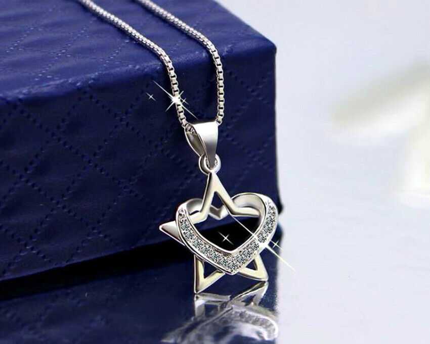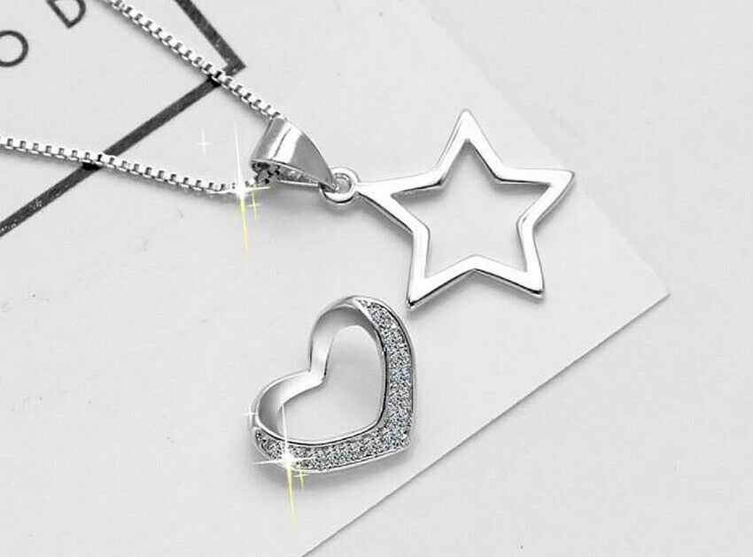 - Product Particulars: This pendant is made of high quality material plated with silver, adorning both the heart and star pendants are sparkling cubic zirconia stones.