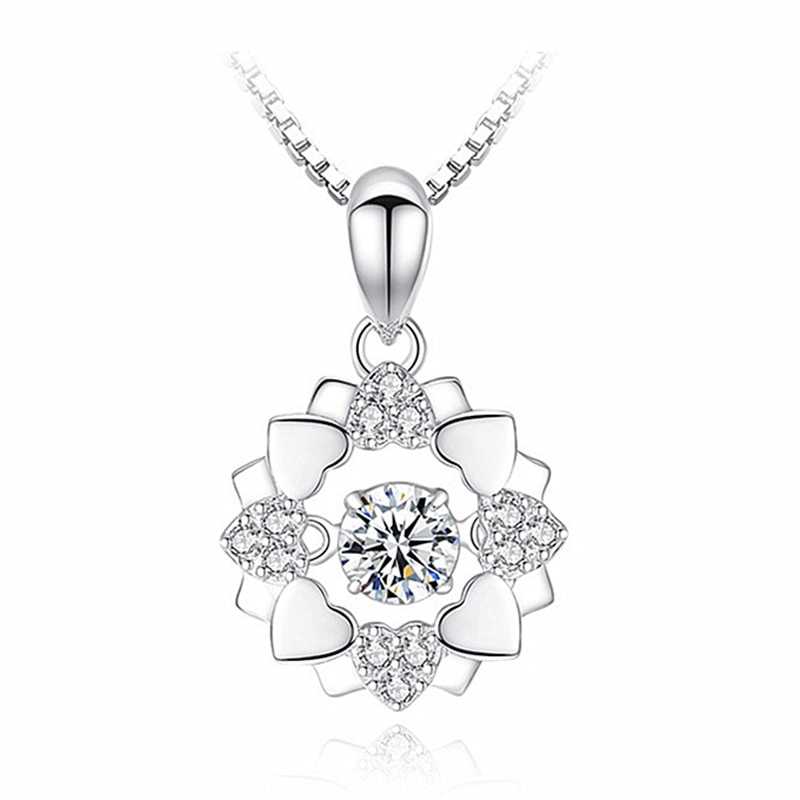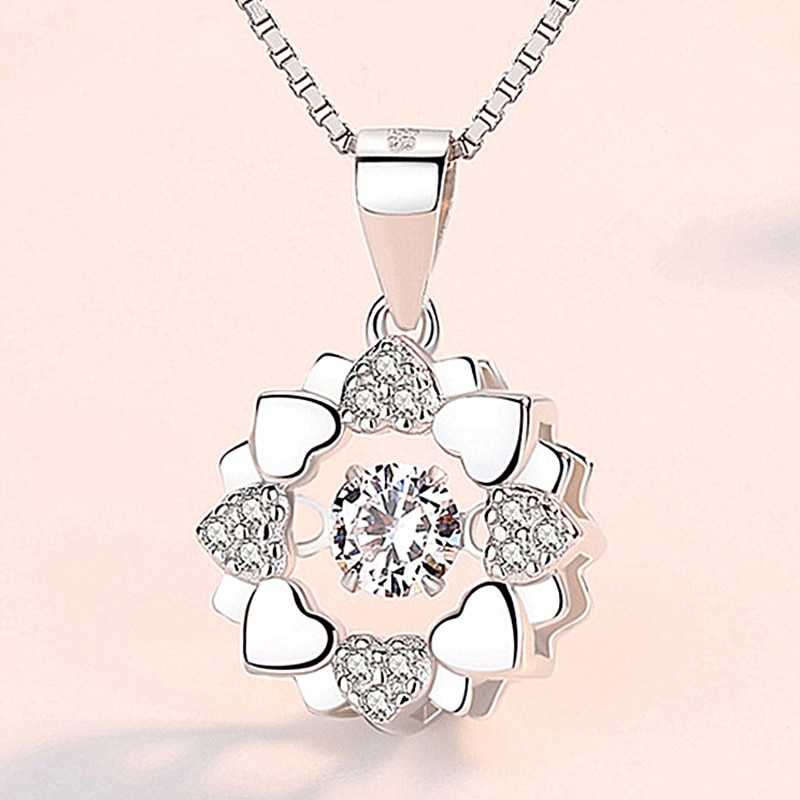 Women's Silver Clavicle Princess Style Floral Heart Pendant Chain