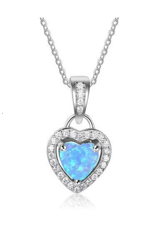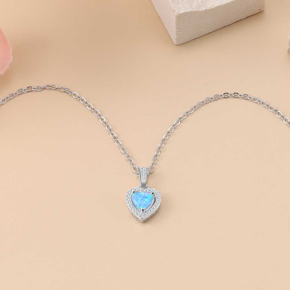 This sterling silver heart pendant necklace is made of lasting elements including cubic zirconia stones that are a step into room head turner. The opal heart pendant is a timeless sign of love. The link chain adds a refined elegance to your neckline. Undeniably feminine and effortlessly chic, express your love story through this pendant.