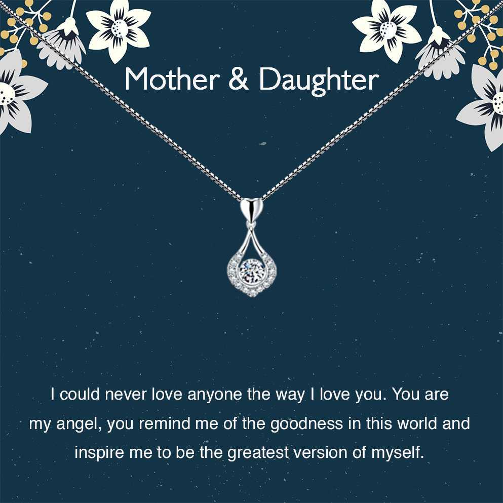 Women's Teardrop Pendant Necklace With Mother and Daughter Message Card