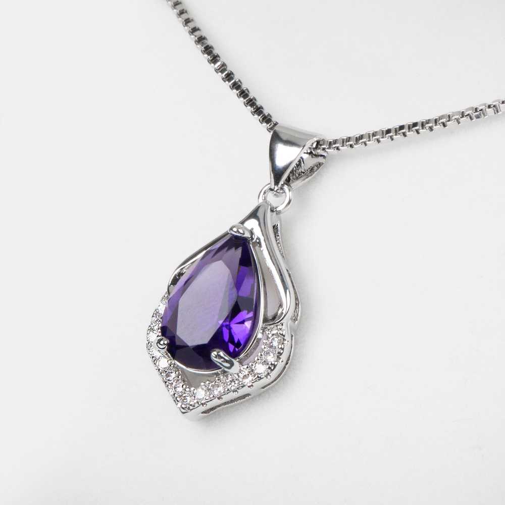 Women's Silver Plated Water Drop Amethyst Pendant With Chain