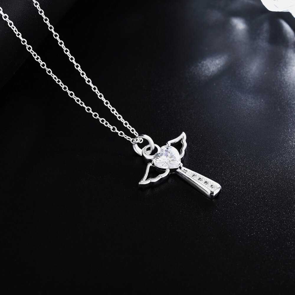 Women's Silver Plated Zircon Cross Pendant With 18 Inch Chain