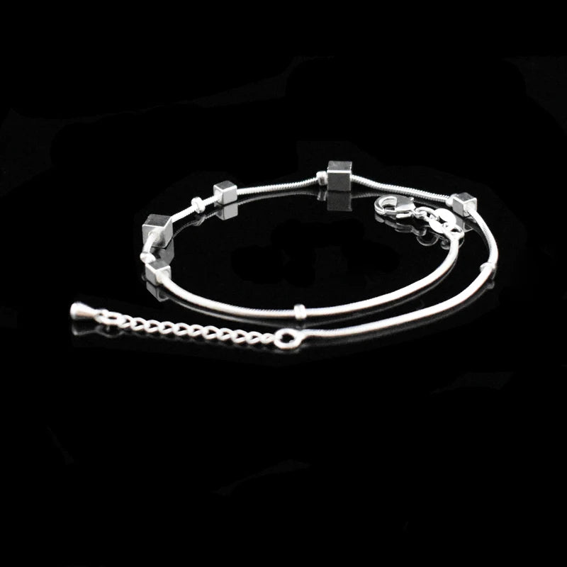 Add a touch of elegance to your beach attire with this stunning 925 sterling silver anklet featuring a square pendant. Perfect as a gift for a loved one.