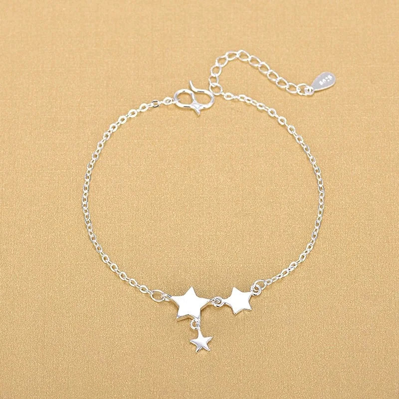 Elegant 925 silver anklet featuring star charms, perfect for women and girls. Adds a touch of glamour to your barefoot look.