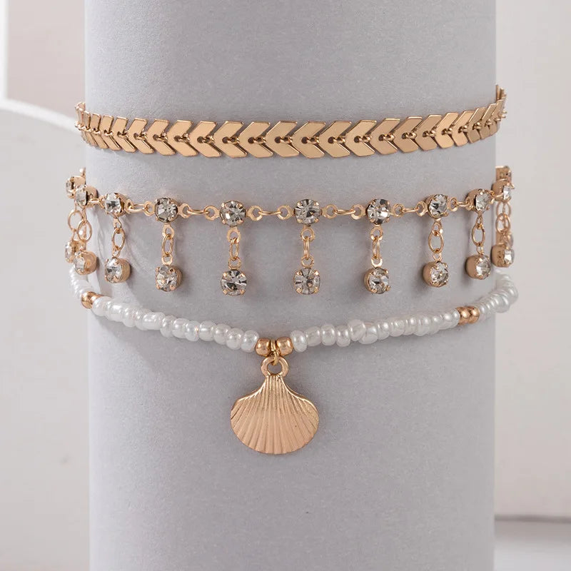 Beaded Shell Pendant Anklet Feminine Street Style