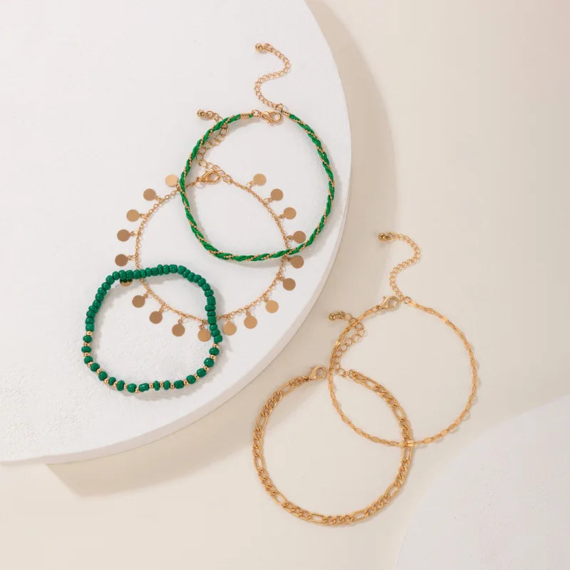 Braided Rope Beaded Pendant Anklet Set Geometric Personality
