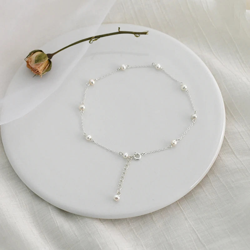 Add a touch of elegance to your ankle with this beautiful freshwater pearl anklet crafted from 925 sterling silver.
