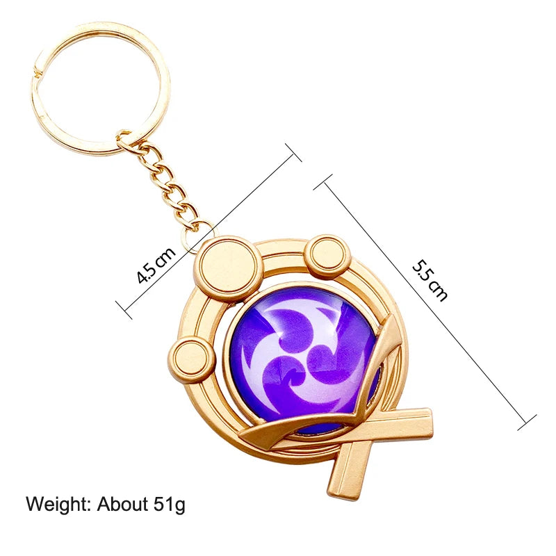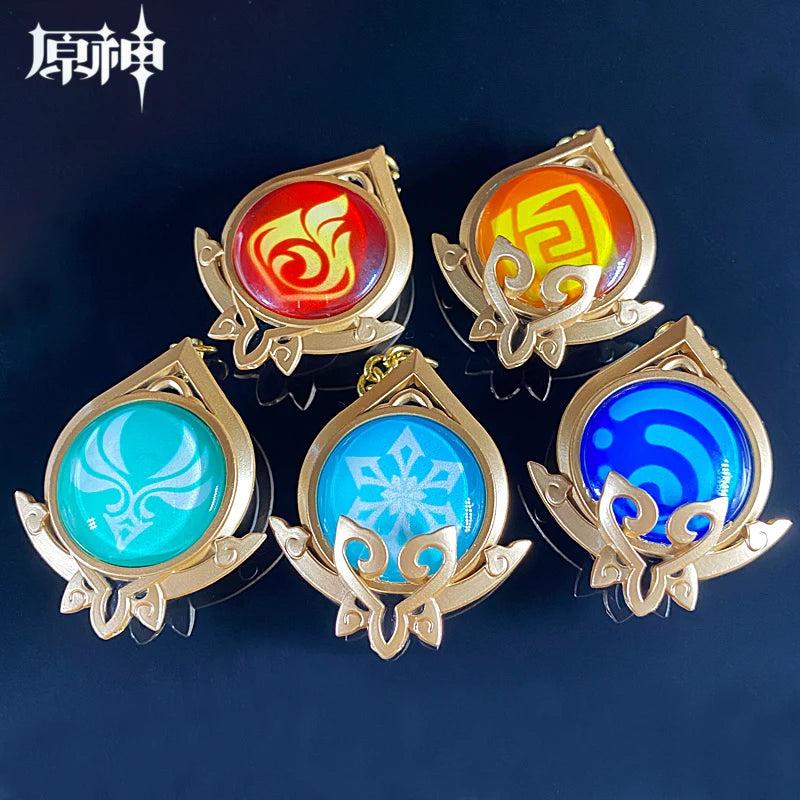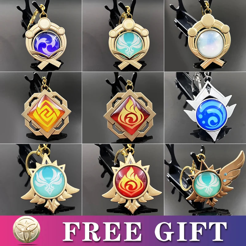 - Includes keychains of Vision holders like Lnazuma, Ganyu, Keqing, Wendi, and others
