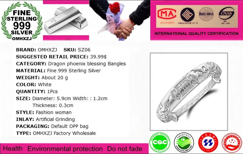 This adjustable fine 999 Sterling Silver bangle features a stunning geometric design inspired by the majestic dragon and phoenix. It is a perfect accessory for a kpop star look.