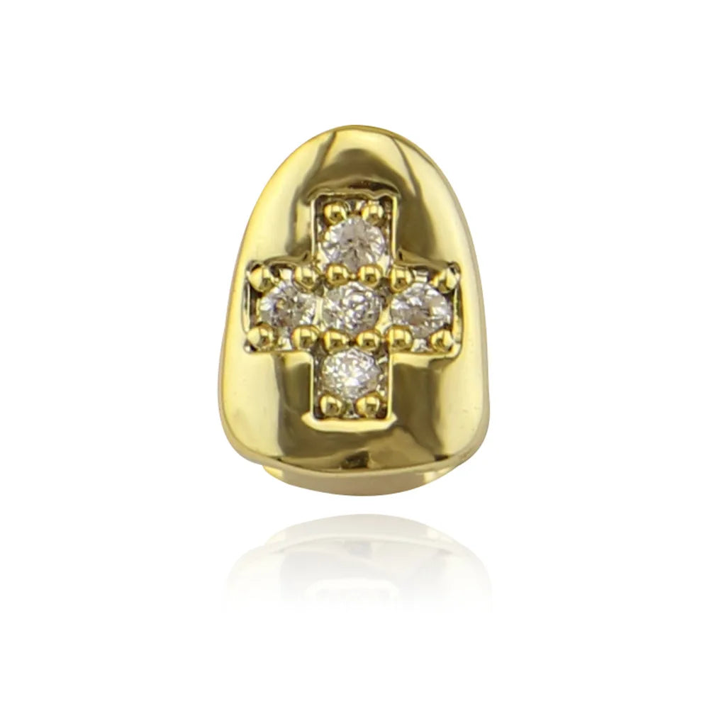 Make a statement with these silver single cross grillz, perfect for both men and women. These iced out tooth grills are a stylish addition to any hip hop look.