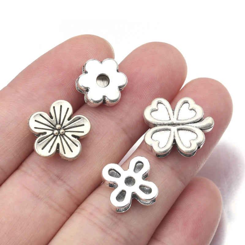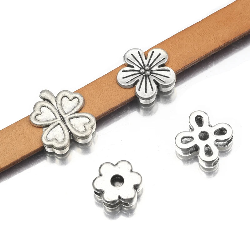 Add a touch of luck to your jewelry designs with these Tibetan silver clover spacer beads. Perfect for making bracelets with 10mm flat leather cord.