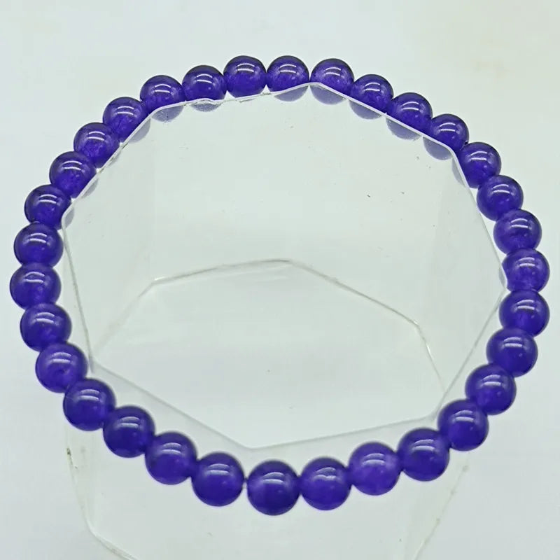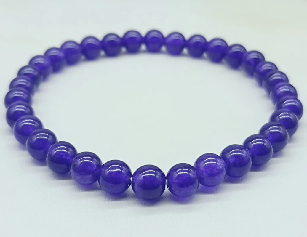 This charming bracelet features 6mm purple amethyst round beads on a stretch band. It is designed to fit a 7.5-inch wrist and makes a lovely jewelry gift for women.
