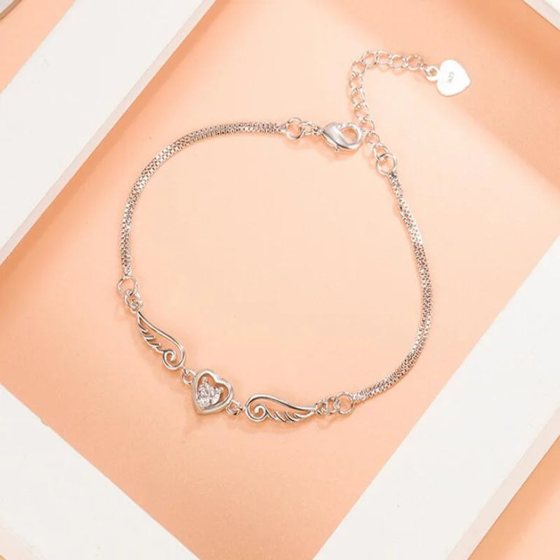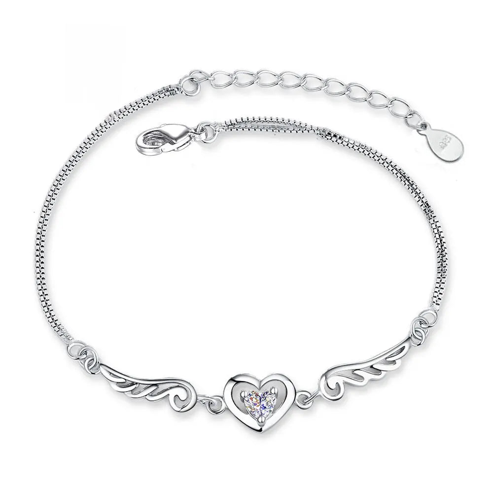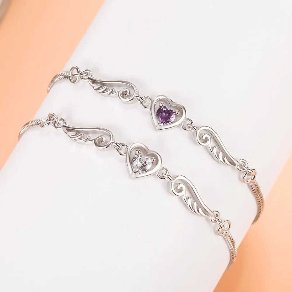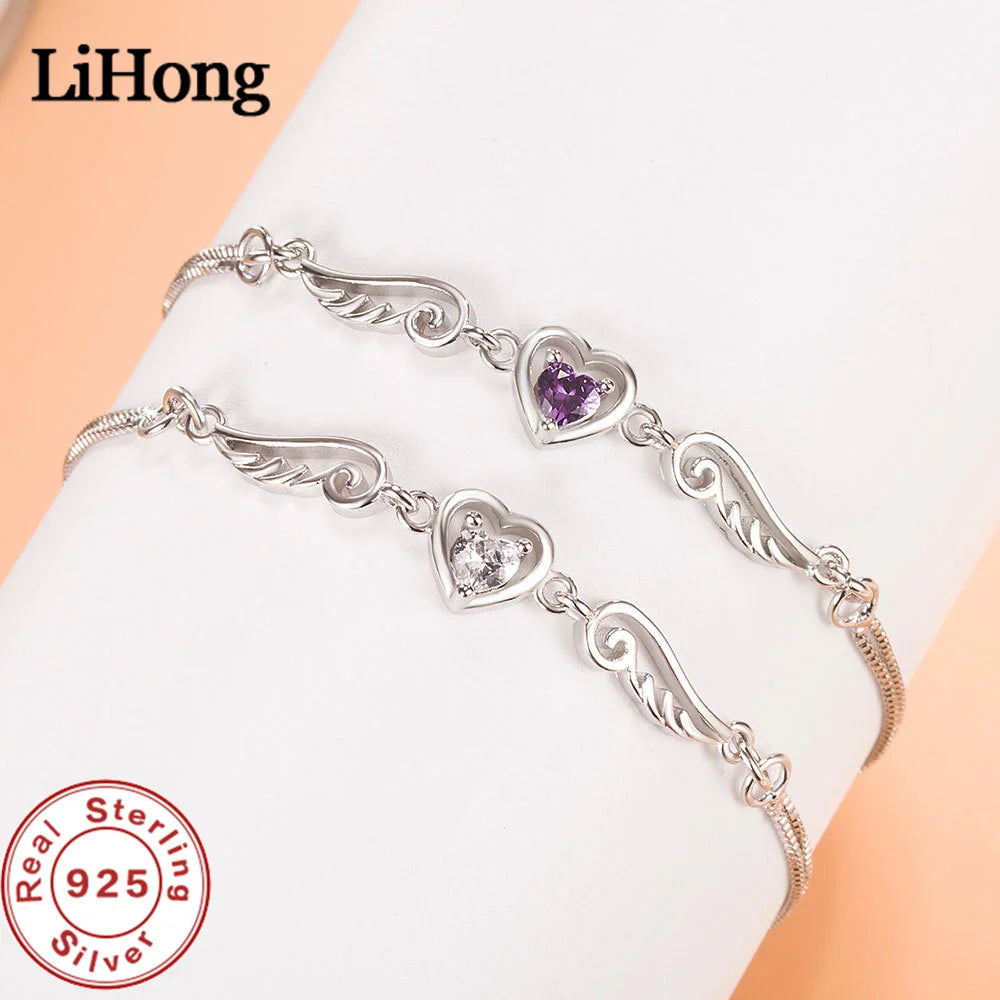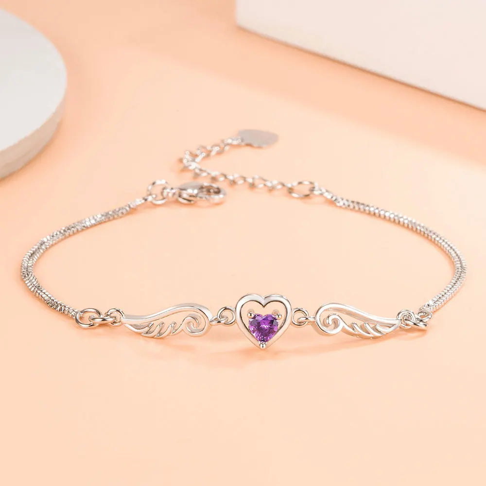 This stunning 925 sterling silver bracelet features an angel lover design with zircon and amethyst stones. Perfect for engagement, wedding, or as a charming jewelry gift.