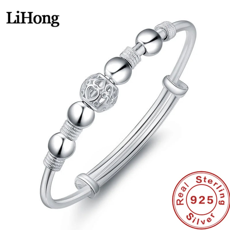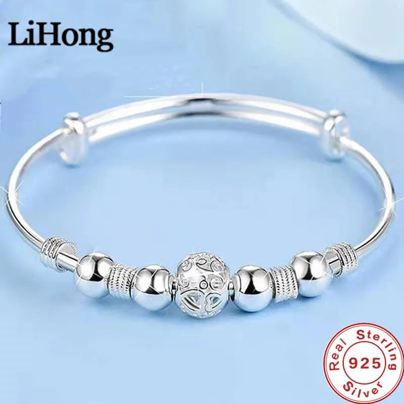 925 Silver Bangle Lucky Beads Bracelet Cuffs Woman&