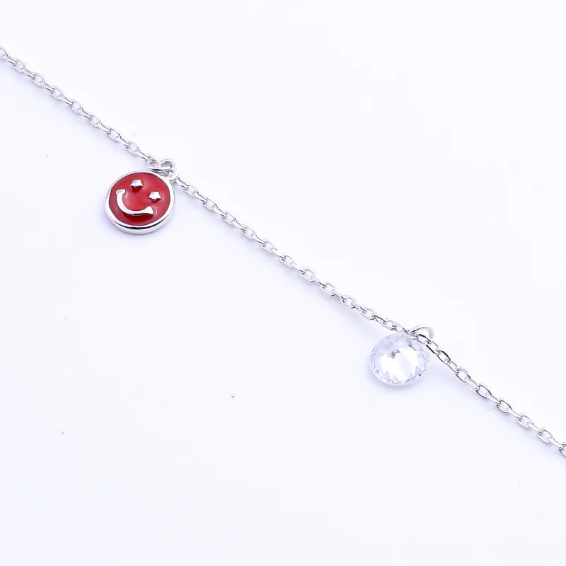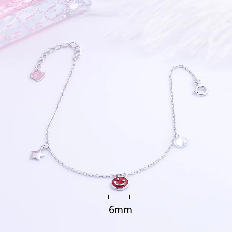 Add a touch of sparkle to your look with this stunning 925 sterling silver bracelet featuring big cubic zirconia gems, star, and a red smile design. Perfect for kids and girls.