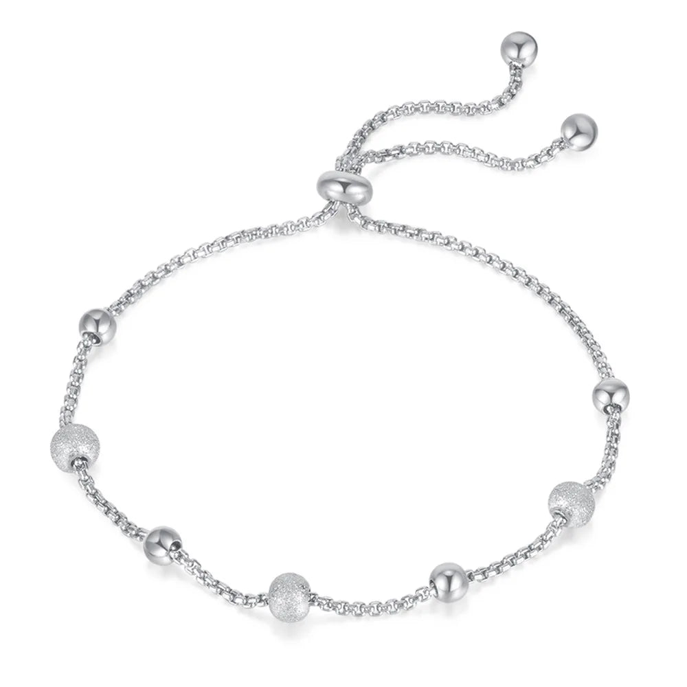 This delicate 925 sterling silver bracelet features small frosted beads and a push-pull adjustable closure. Perfect for women's jewelry collection.